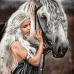 نخ و نقشه تابلوفرش طرح زن سیاهپوش و اسب