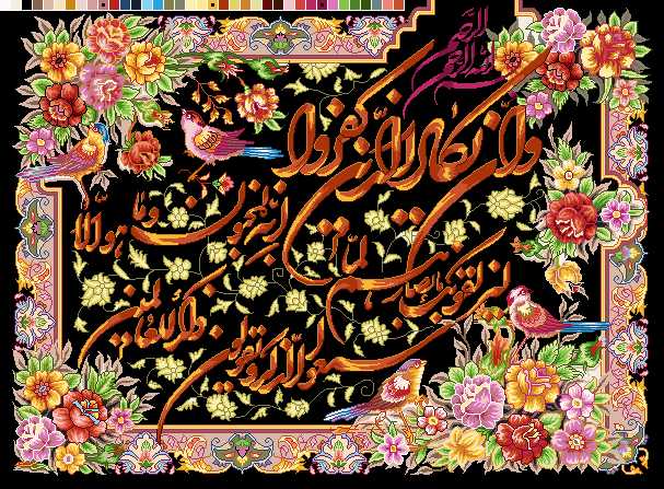 نخ و نقشه تابلوفرش طرح ان یکاد گل و بلبل